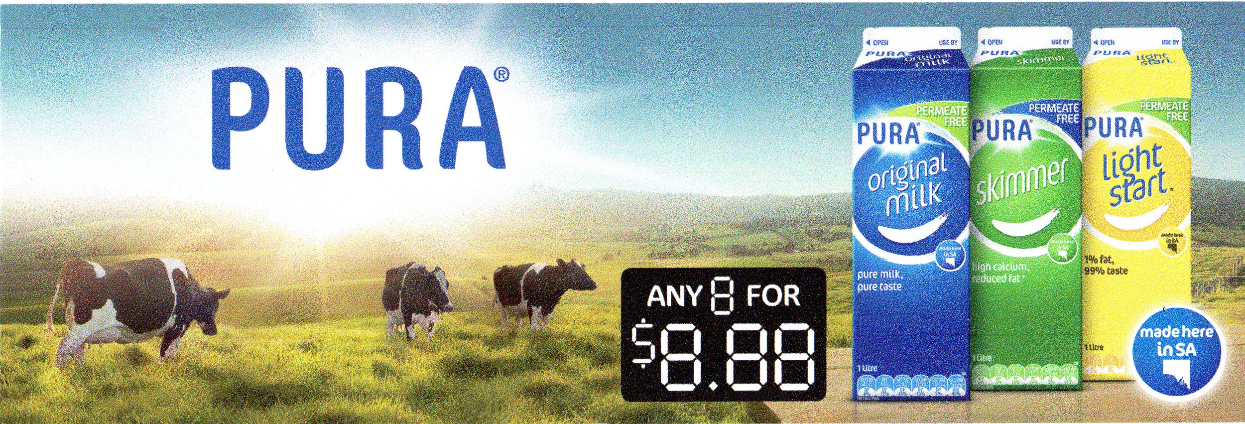 ·      Lion White Milk ‘A’ Frame – should be the first sign carried out and displayed boldly. We would cover the word ‘PURA’ at the top with a big price ticket printed and laminated from Officeworks.